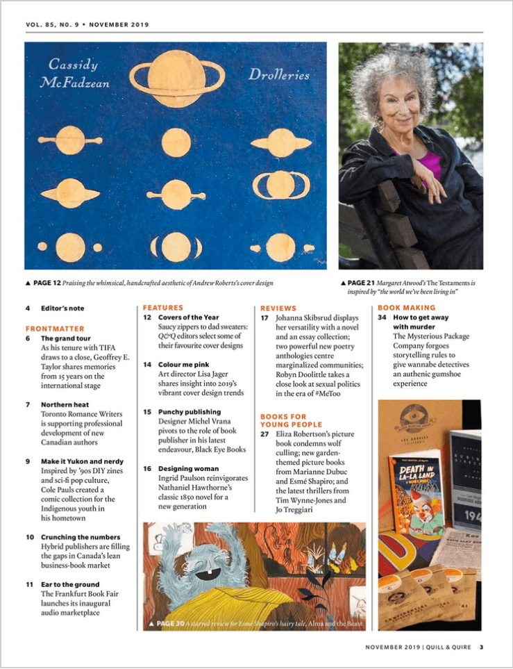 “In Drolleries, Cassidy McFadzean finds beauty in both earthly monsters and the heavenly art that such beasts inspire. Nymphs, ghosts, fortune-tellers, and other fantastic characters clash in disorienting narratives that illuminate uncomfortable truths about the way history repeats itself across time and space. “I’ve been reading the news / so much it’s entered me” McFadzean writes in “Study of a Torso,” and her poems have a similar effect, drilling down with mnemonic power that will stick in reader’s minds.”
